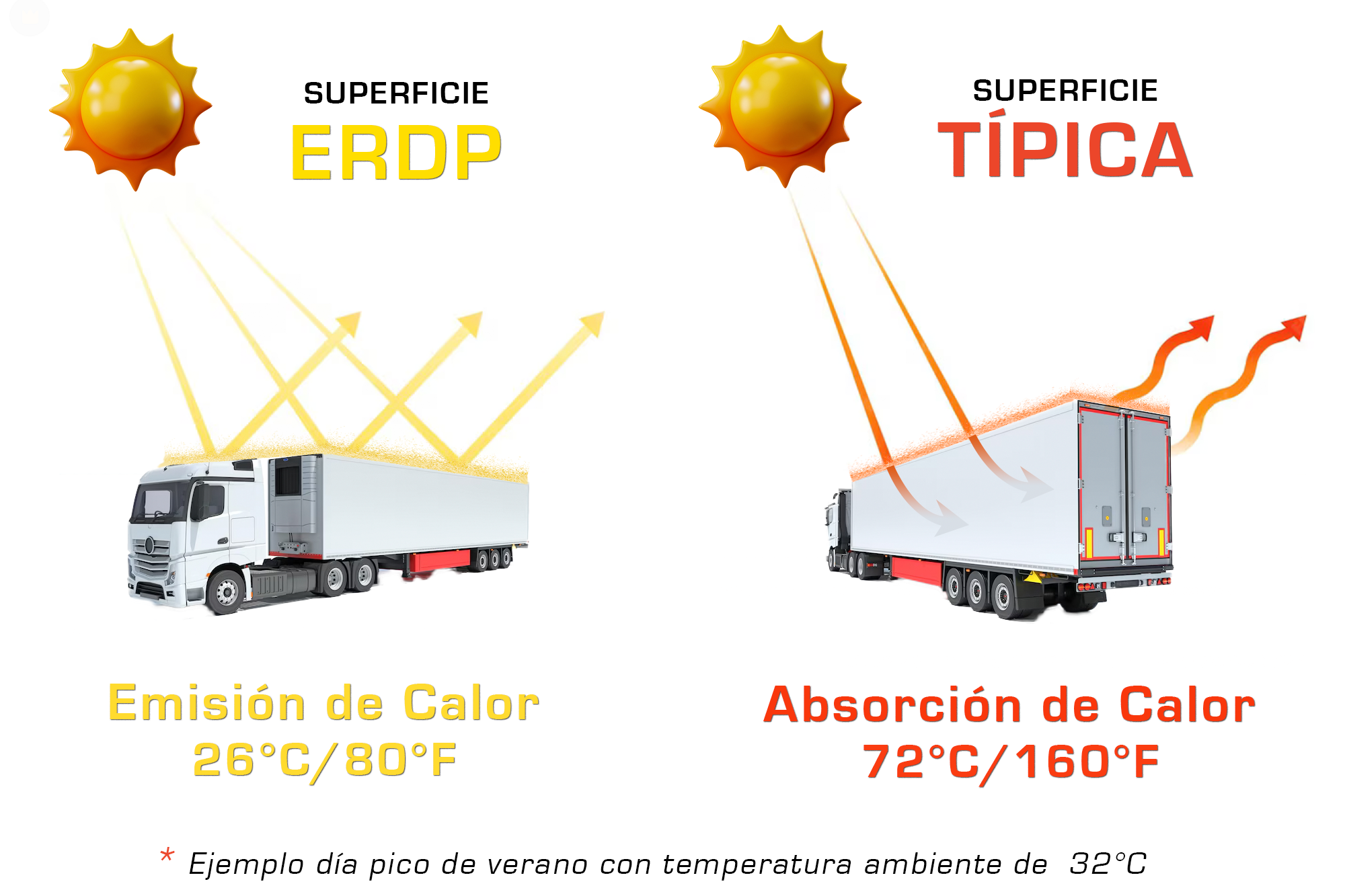 Reduce el consumo de combustible en un 23% para enfriar superficies expuestas al sol en algunos casos de uso.