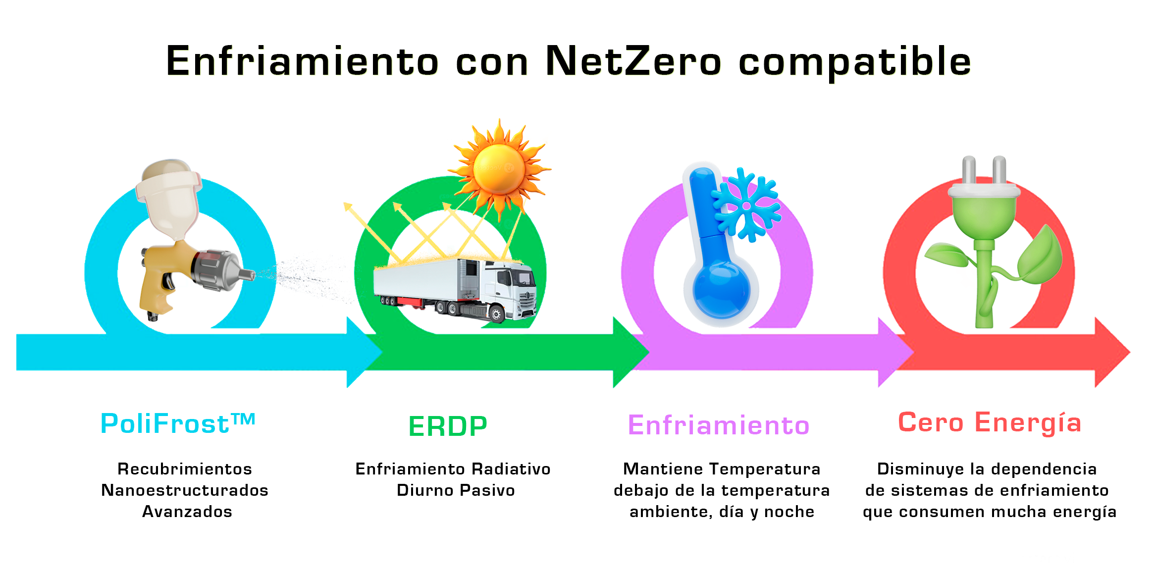 PolyFrost™ es un revolucionario revestimiento que exhibe una reflectividad solar y una emisión de infrarrojos excepcionales. Este revestimiento versátil enfría las superficies un promedio de 6 °C por debajo de la temperatura ambiente durante las horas pico. Es intrínsecamente hidrófobo y resistente a los rayos UV, aplicable en varias superficies, incluidos metales, telas, plásticos y madera, y también se puede colocar de manera independiente.